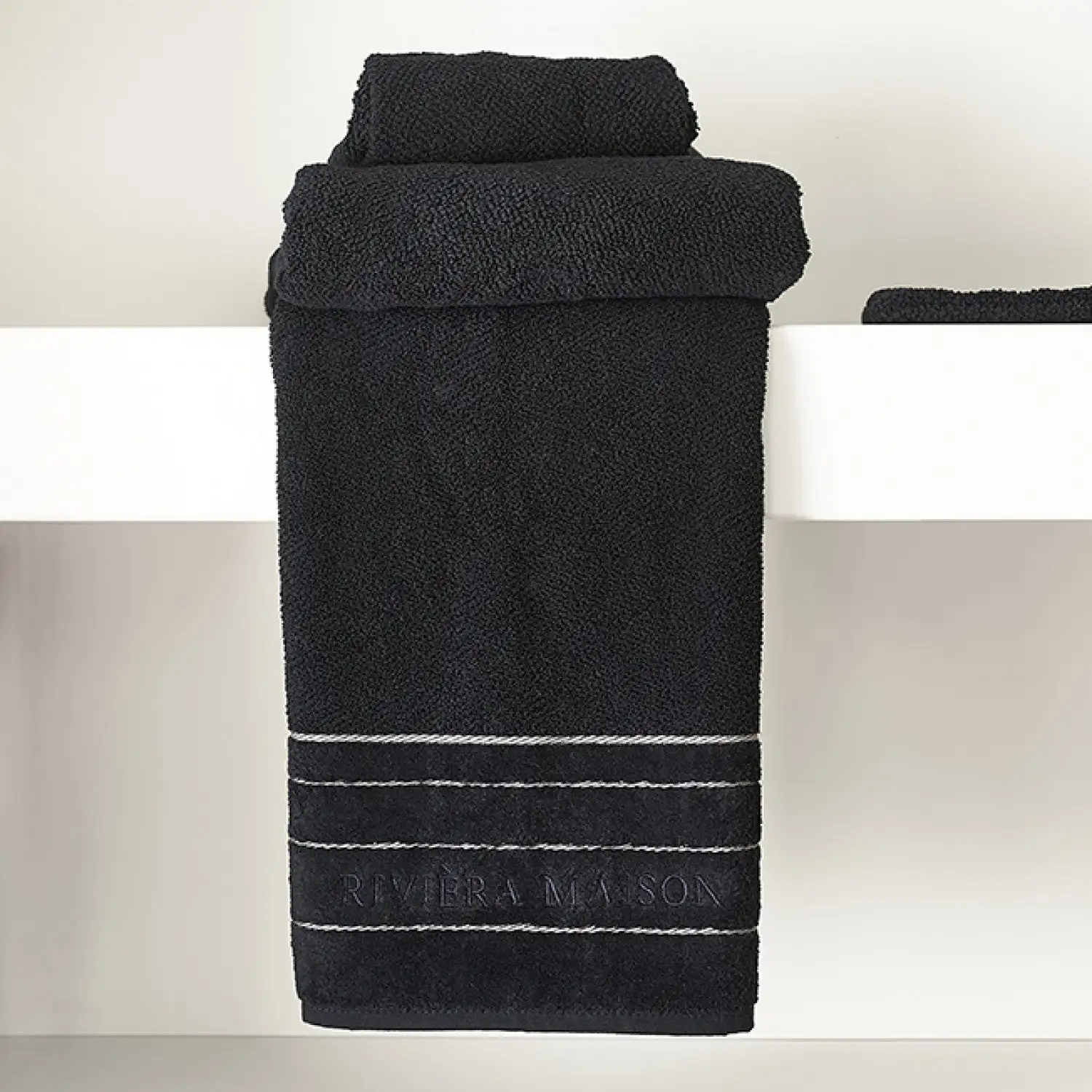 This black 100- by 50-centimetre RM Elegant Towel combines an ideal size with the luxurious quality of the kind of bath linen you’d expect to find in a five-star hotel. Also available as a washcloth, guest towel and bath towel, in several colours.