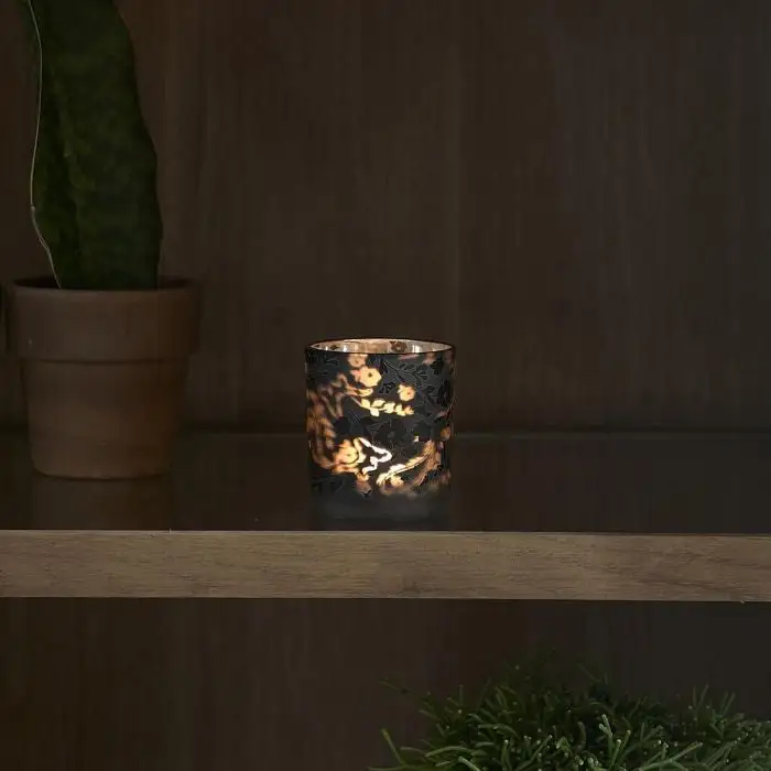 This glass tealight holder consists of several printed layers for a subtle light effect. The lantern is 8 cm tall with a diameter of 7.5 cm. Gorgeously decorated, this lantern makes for a great Christmas gift!