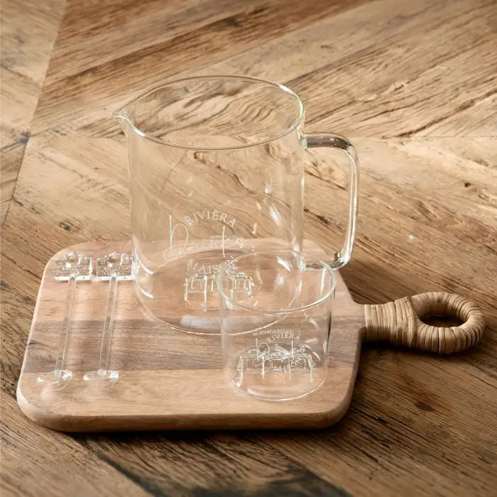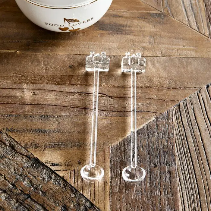 These two handcrafted glass stirrers come ‘spooning’ in their gift wrap. The tops carry the Rivièra Maison iconic house and the bottom end has a small spoon shape for stiring.