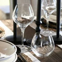 Timeless in its design and form, this classic rounded water glass has our branding etched into it with fine, classy lettering. A glass that is a pleasure to hold in one’s hand and lessen your thirst.