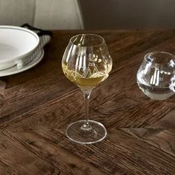 Our classic white wine glass makes every sip a pleasure. The chic round form and our branding crafted in beautiful handwriting on the front bring extra class to any social occasion.