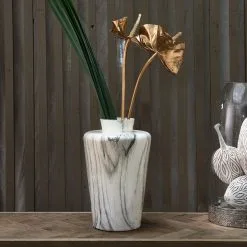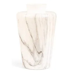 A medium-sized glass vase with a beautiful marble pattern. The small neck makes the vase suitable for holding single branches or large flowers together. And if you don’t have a suitable filling for the vase, it is very nice as a decoration.