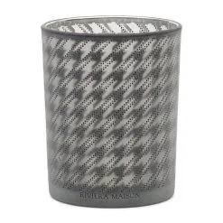 A tealight holder of glass with a pied-de-poule motif. The result is that you can barely see the tealight and the light is very subtle. Features five overlapping layers of print. The lantern comes finished with a black rim at the top. This lantern is 12.5 cm tall.