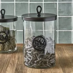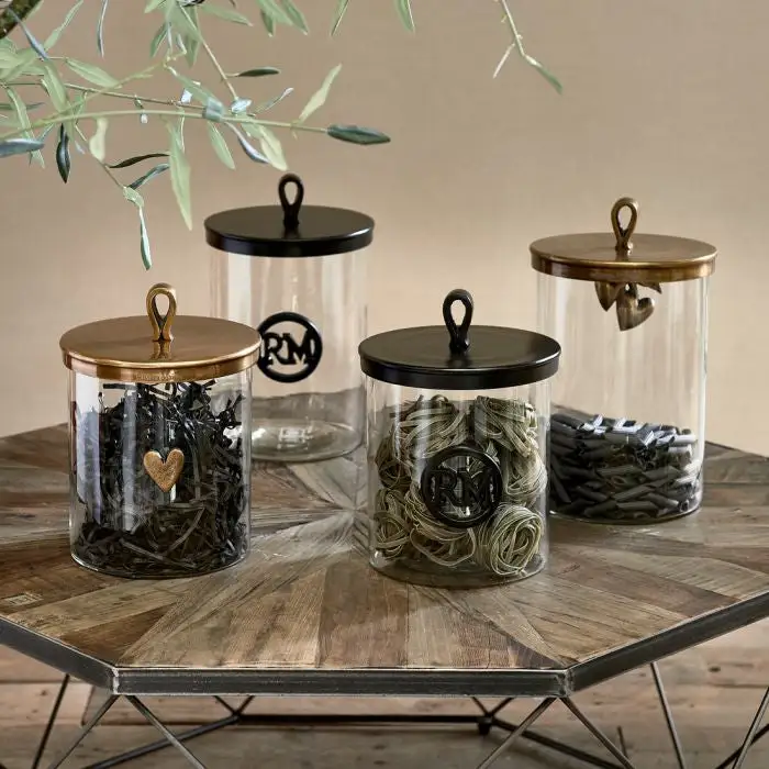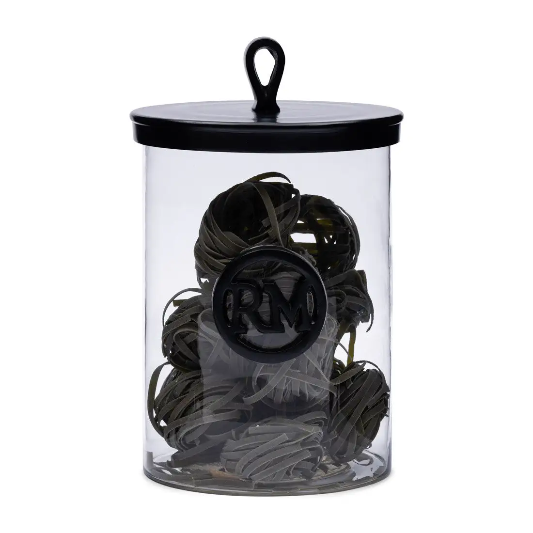 The RM Soho Storage Jar has a rugged twist. The jar is made of mouth-blown glass and finished with black details, like the aluminium lid and the letters on the pot. Available in various sizes.