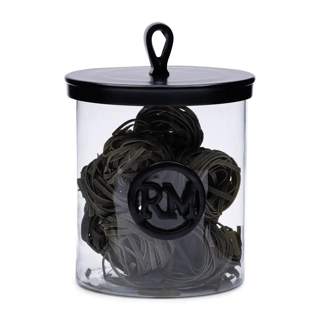 The RM Soho Storage Jar has a rugged twist. The jar is made of mouth-blown glass and finished with black details, like the aluminium lid and the letters on the pot. Available in various sizes.