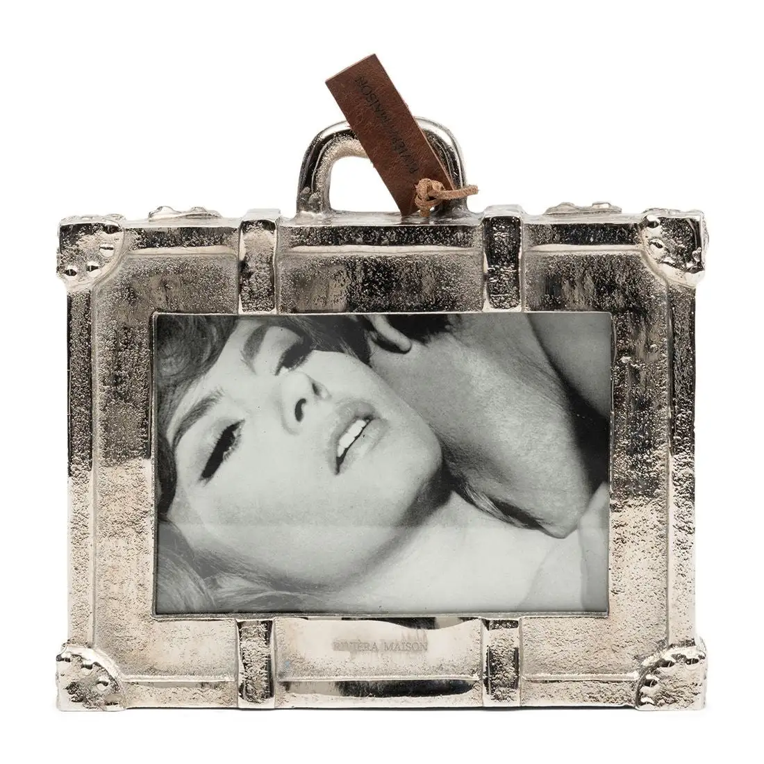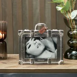 The RM Suitcase Photo Frame is a beautiful photo frame for a holiday photo, for example. The list is in the form of a travel suitcase. The frame is made of silver-coloured aluminium and has a leather ‘luggage tag’. The aluminium is not polished, giving the frame a rough and tough finish. Suitable for photos of 10 x 15 centimetres.