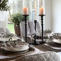 The chic Warrington Tower Candle Holder brings a touch of elegance and refinement to any dinner table. It is made of black powder-coated aluminium and lights up its surroundings with a warm, tasteful glow.