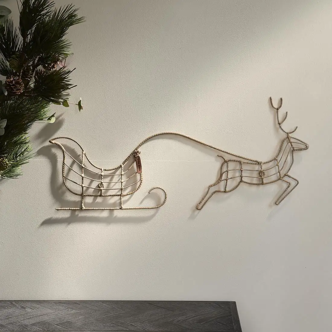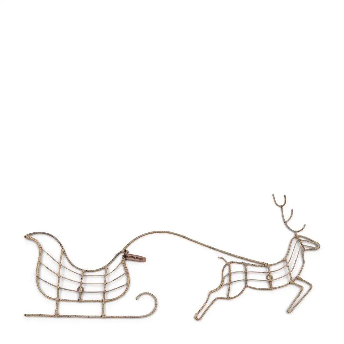 What adds an extra dimension to your Christmas decoration? Rudolph Santa’s reindeer with his sleigh. Handmade from rattan, with a beautiful wound iron frame, literally a picture on your wall. With leather RM branding label. The width is about 80 cm.