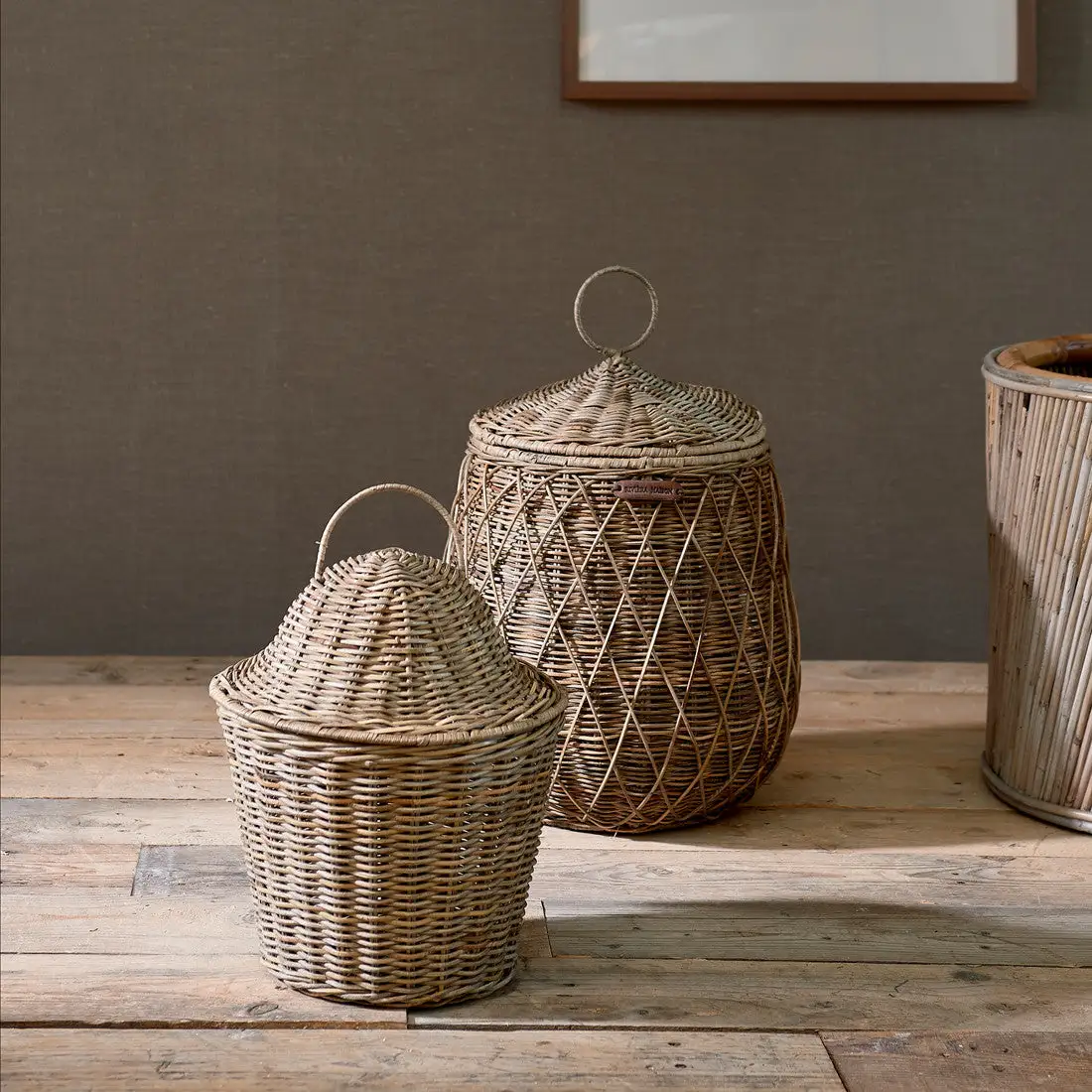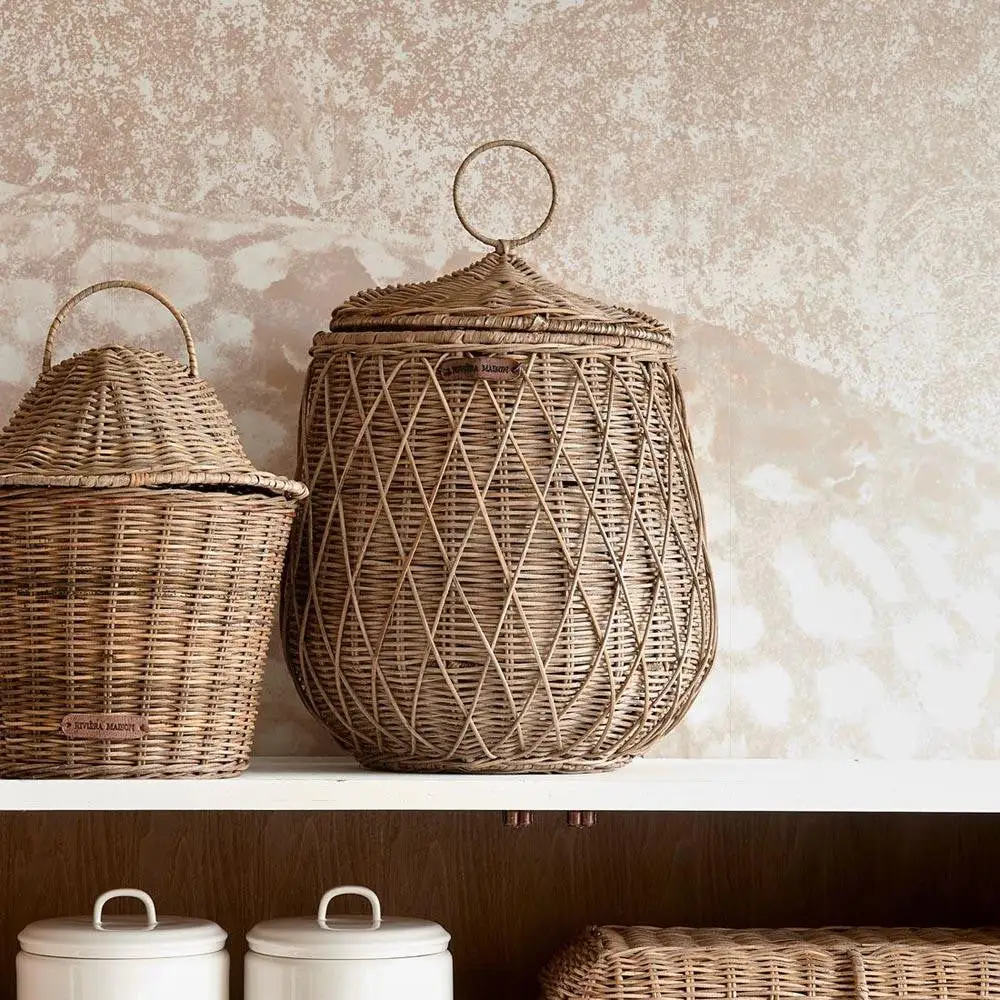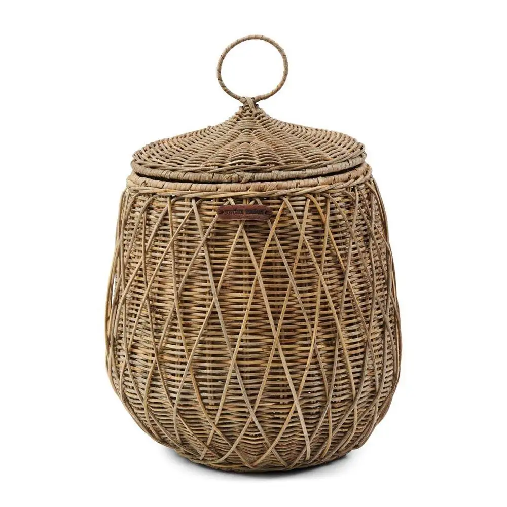 Thereโs something special about this rattan storage basket. Two different techniques were used in the manufacturing process, and it shows. A distinctive diamond weave covers the traditional braiding.pattern. You can close the basket with the nifty lid. And keep everything stored out of sight.