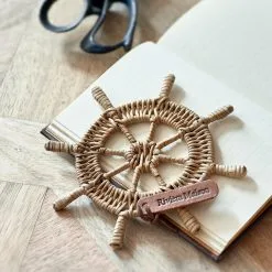 Another item in the sea related range of rattan wall decorations, this RR Steering Wheel Decoration is a very good representation of a ships steering wheel with eight spokes. It is made with hand braided rattan on a rattan core as well and features our RM logo in leather.