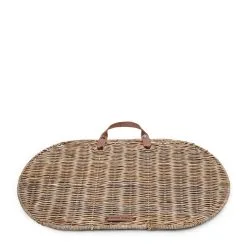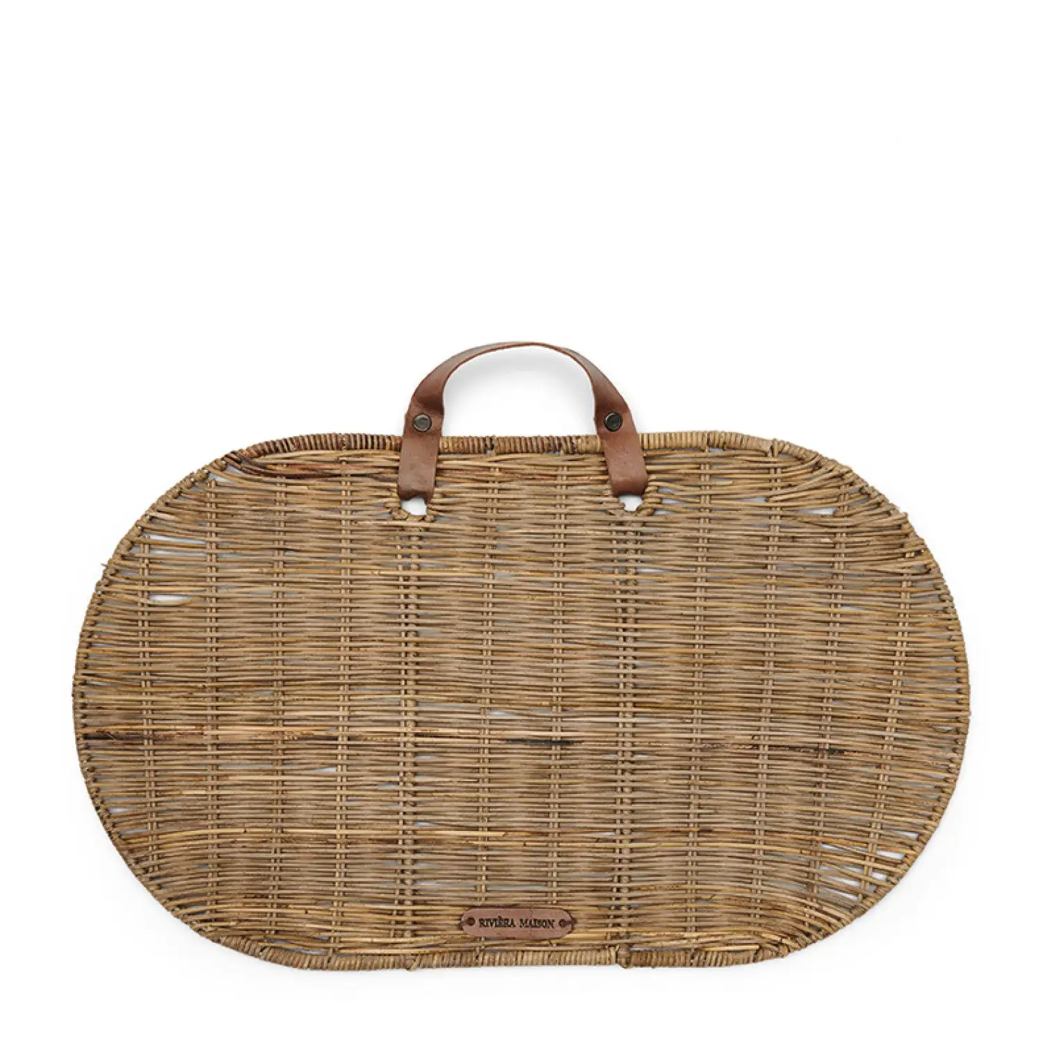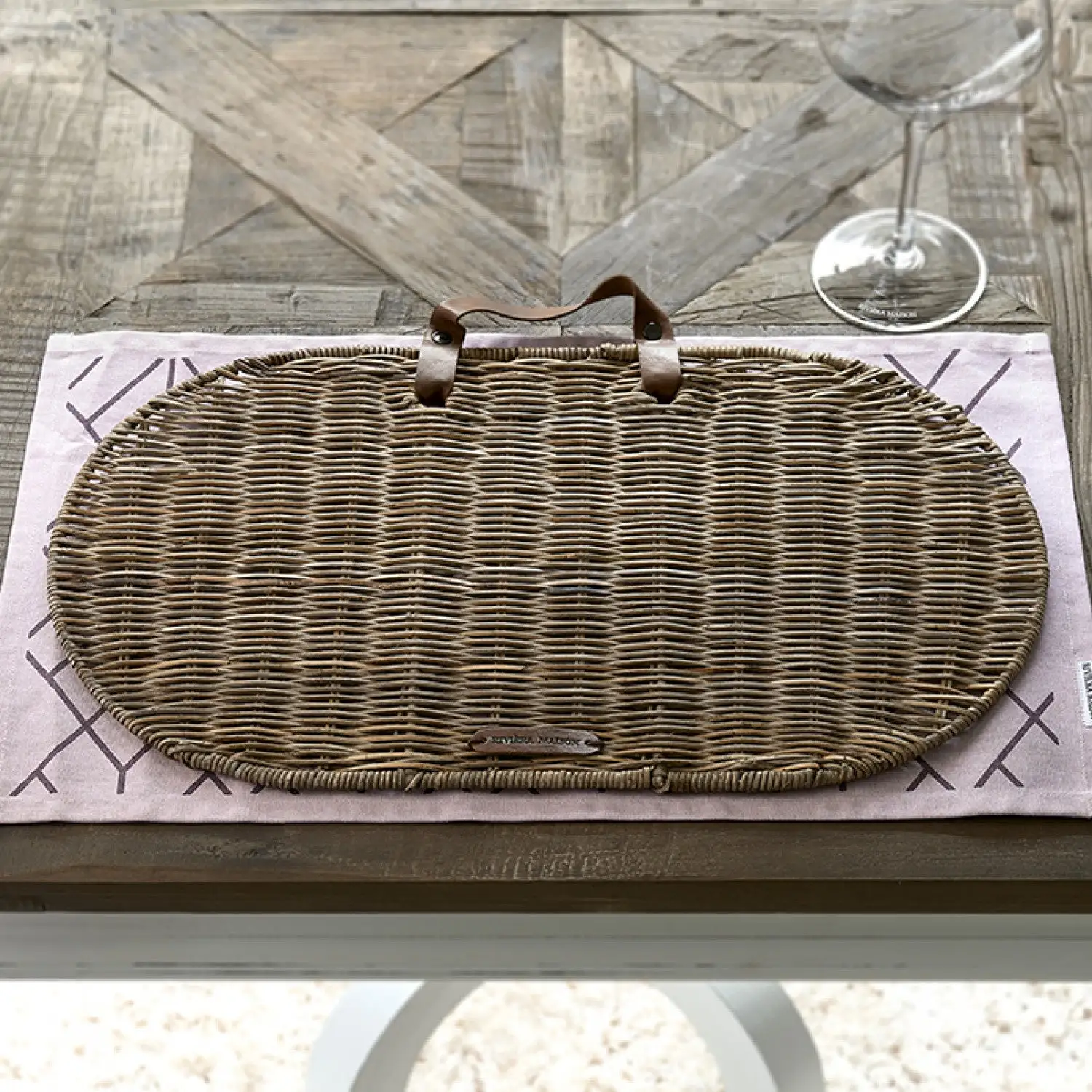 Add a pinch of rustic rattan to the dinner table with this handmade placemat in the shape of a suitcase. At the top is a handy decorative leather handle.