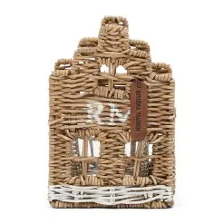 RR stands for rustic rattan, and rattan makes us happy. This cheerful little house holds a small pillar candle or a tealight. Rattan is a natural product that can discolour over time, making the house even more beautiful.