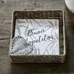 Napkins that blow out in all directions are of no use to anyone. They have to stay in place until someone needs one. This rustic rattan basket is designed for that task. With the heart on top as a “guard” that prevents the wind from blowing away. Now everyone can enjoy snacks and drinks in peace and quiet. Of course this basket can also be used indoors.