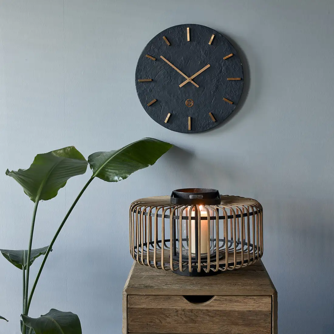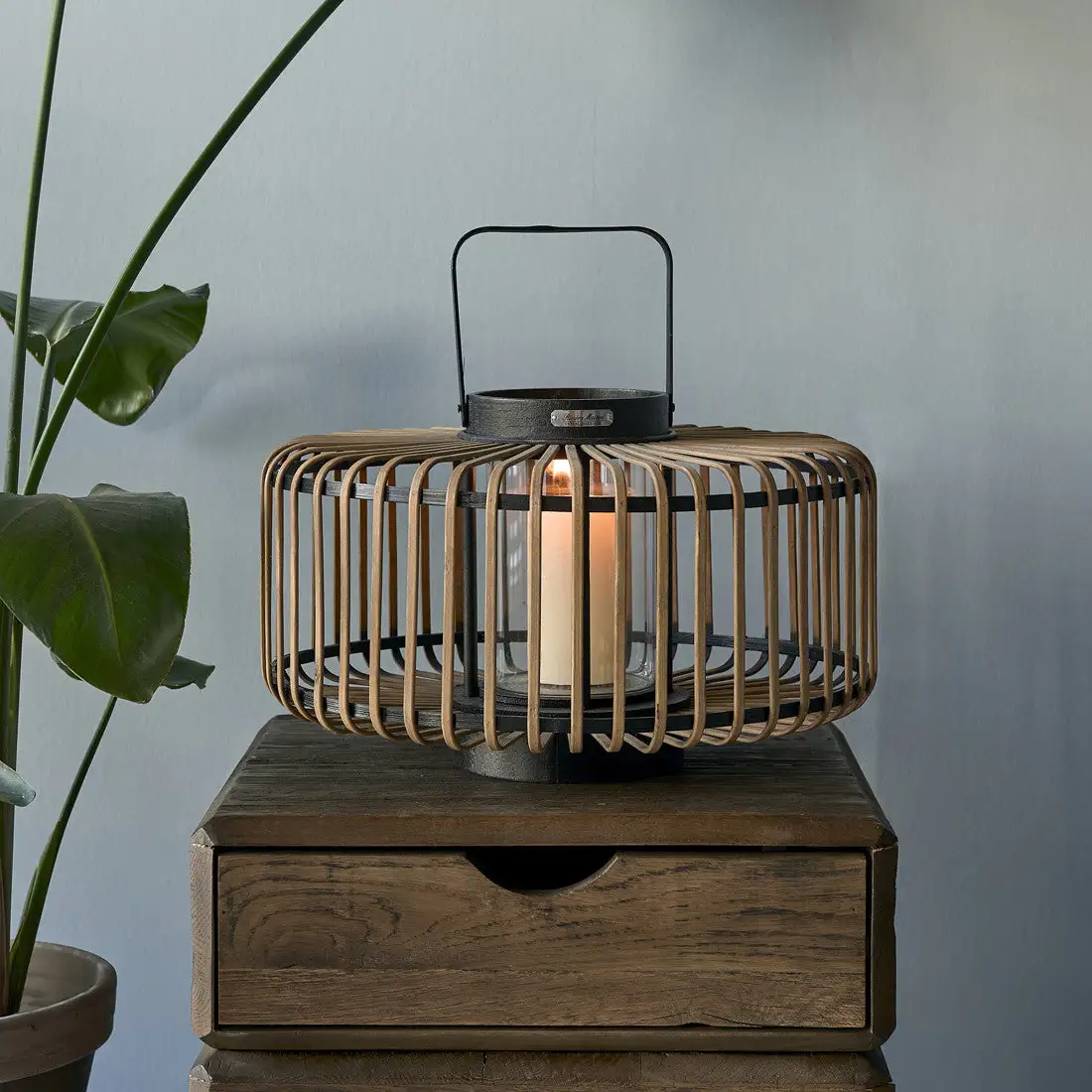 Hand crafted from bamboo and spruce wood the Saint John Lantern has an outer screen of bamboo surrounding a black frame with a glass holder set in the centre. The surround is wide and low with a somewhat squat look, the holder being ideal to hold one of our block candles. This is a true work of art and carries the Rivièra Maison logo on a small metal label.