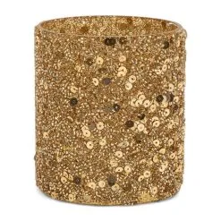 Illuminate your room with the Sassy Sequins tealight holder. This round, glass holder is intended for a tealight or a small candle and comes covered with lots of golden beads and spangles on the outside. Available in various sizes.