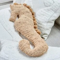 This stuffed cushion is shaped like a seahorse and is completely hand braided of dried strips of raffia. Why not combine this unusual pillow with other items with the seahorse theme.