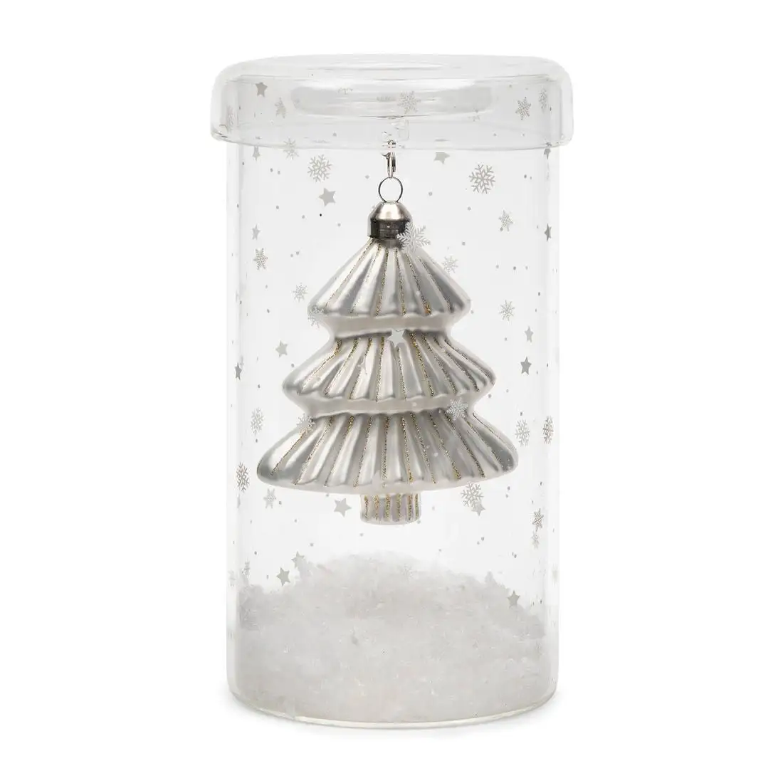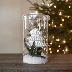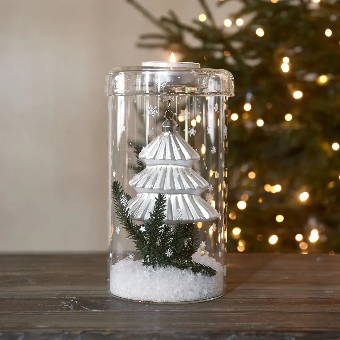 Looking for a special tea light holder for the holidays? Then you’re in the right place with the Sparkling Tree tea light holder. The holder is made of glass, with a recess in the round lid for the tea light. A white Christmas bauble in the shape of a tree hangs from the lid. You can fill the inside of the holder yourself. Available in different versions.