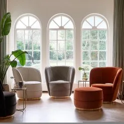 The Taylor Lobby Armchair looks like it came straight from the lobby of a chic hotel and has a look similar to the Thompson footstool but with a sweeping back. This armchair features a round seat and back, which has a small opening for an airy effect.