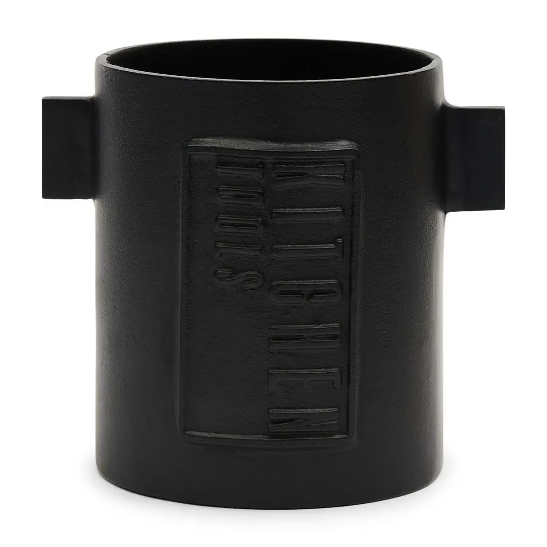 Spice up your kitchen with our urban-style kitchen utensil holder. Made from black powder-coated aluminium and sitting on a shiny gold-coloured base, this holder radiates quality whilst being strong enough to take a knock or two. The stylishly carved letters on the front add to the modish industrial air.