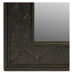The Yosemite Mirror is available in two sizes. This is the 120 x 80 centimetre version. This spacious rectangular mirror features a chic frame of recycled oak in a black colour. The wood is inlaid in a herringbone pattern. The mirror is 5 centimetres deep.