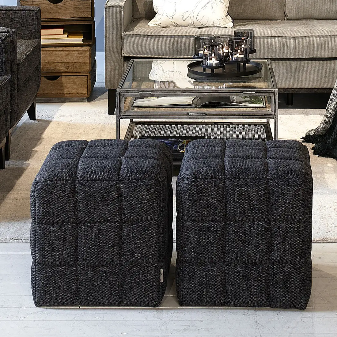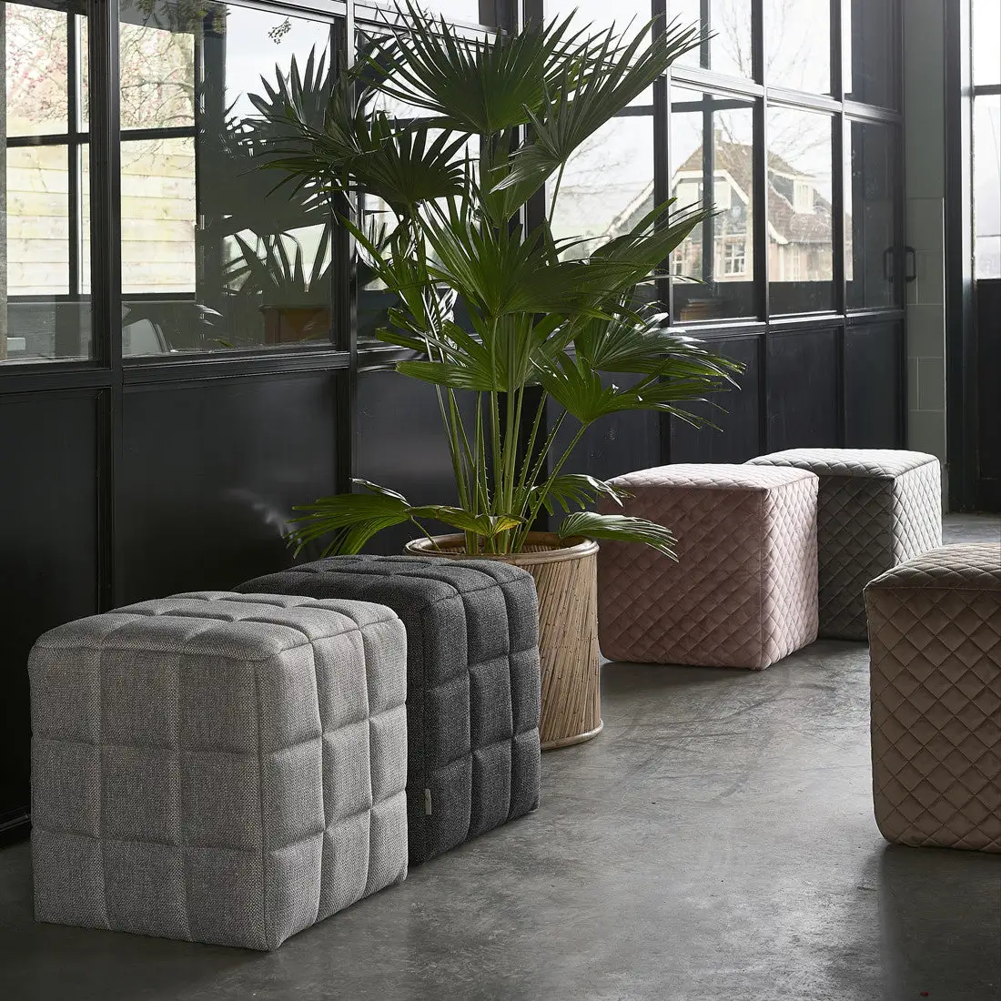 The Thames footstool is a nice little pouf to pull up if you need an extra seat or to rest your tired legs on. This cube-shaped pouf is stitched on all sides, dividing each side into small squares. Available in various colours.