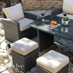 Table size: 140cm W x 85cm D x 71cm H with 5mm tempered glass