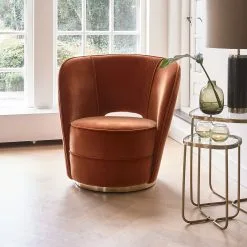 The Taylor Lobby Armchair looks like it came straight from the lobby of a chic hotel and has a look similar to the Thompson footstool but with a sweeping back. This armchair features a round seat and back, which has a small opening for an airy effect. This chair is available in various materials and colours.