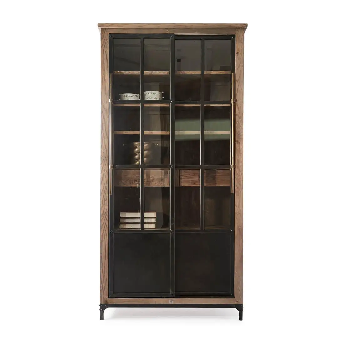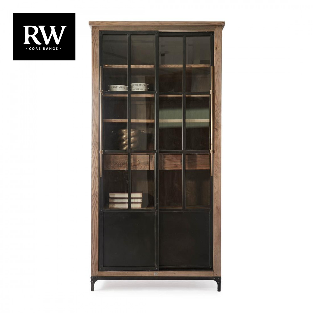 - Industrial with a unique design; The Hoxton Cabinet is a rugged cabinet that looks great in any decor. This tall cabinet has metal doors with glass, which can be opened by sturdy metal handles. The perfect solution to tidy up all your belongings in style.