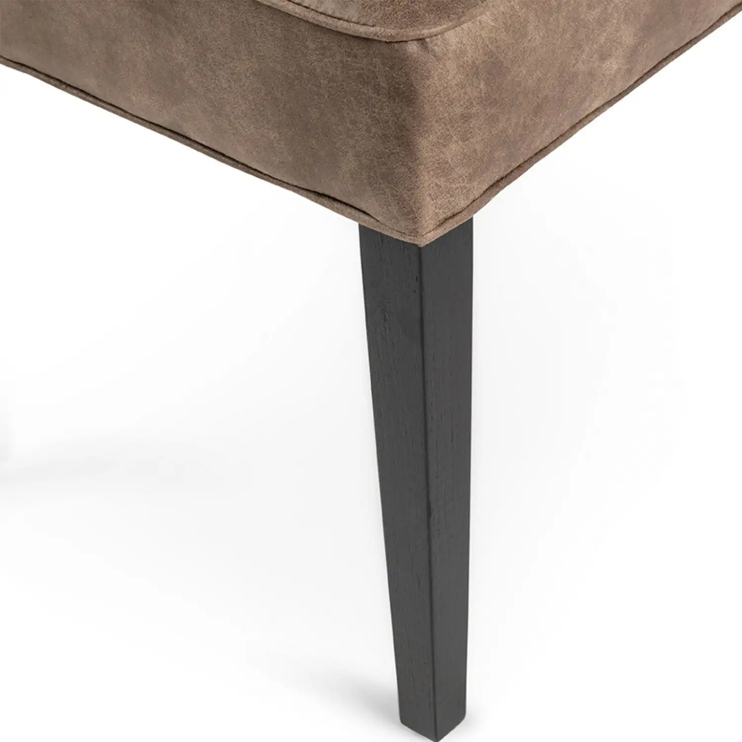 The luxurious version of the dining chair in the Cape Breton series. Deliciously soft pellini leather, in beautiful colours and handsomely tufted. The legs are made of sustainable rubberwood: the tree isn’t cut down until it stops producing latex.