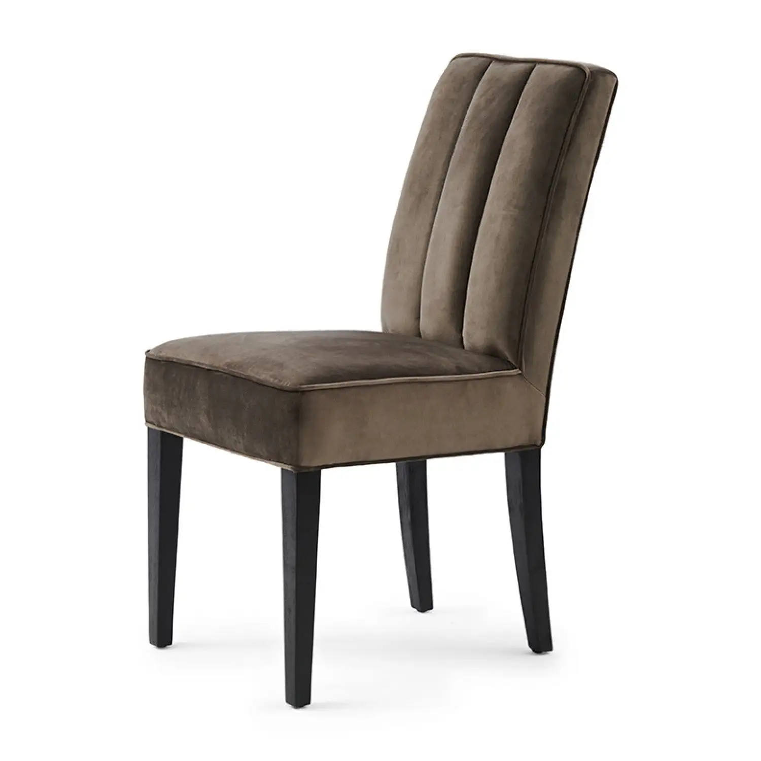 This dining chair from the New Jersey Velvet III series is a modern variety of the popular Cape Breton by Rivièra Maison. Soft velvet and tufted, on sturdy rubberwood legs. Beautiful as well as sustainable, and available in three colours.