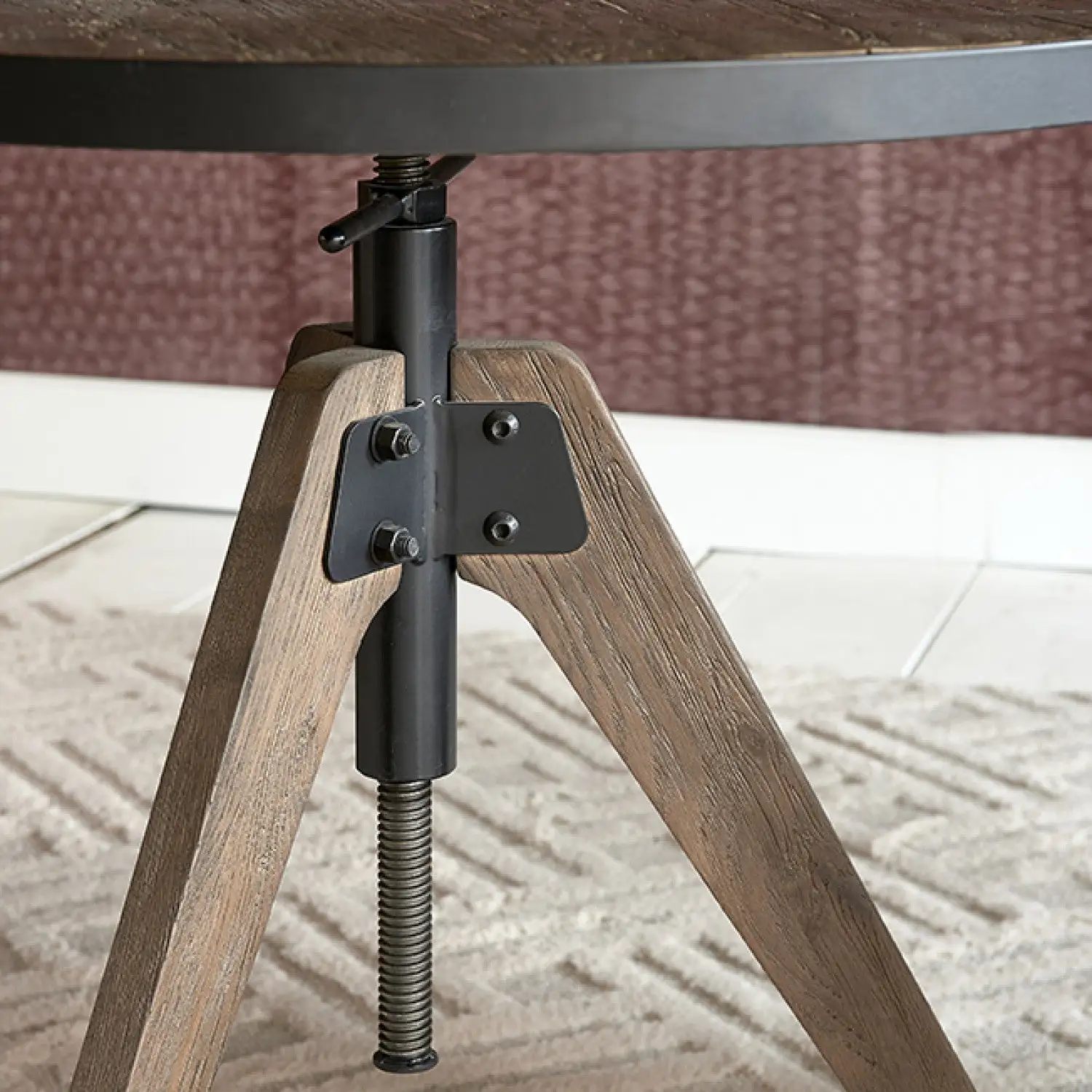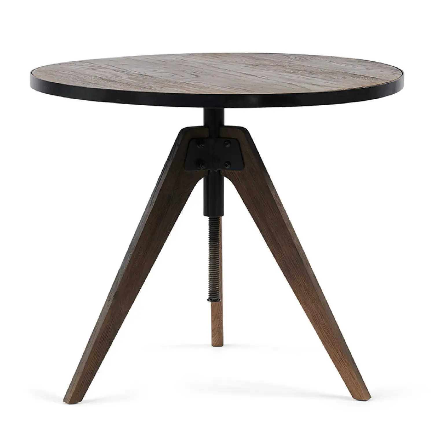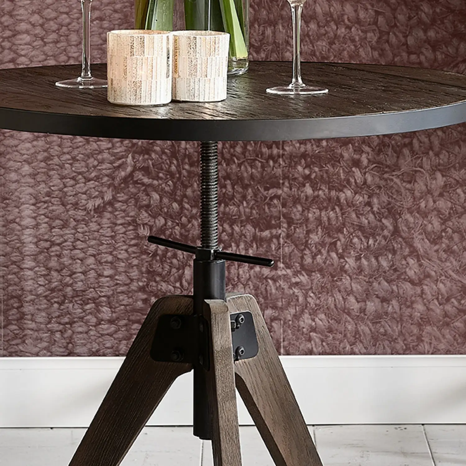 The height of the Whyte Bistro Table can be adjusted by twisting it clockwise or counterclockwise and then secured with the handle underneath the tabletop.