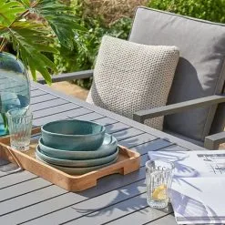 The Titchwell Corner Lounge Dining Set in Grey creates a luxurious experience using contemporary materials for the perfect deep seating outdoor furniture. This popular aluminium corner sofa dining set is both stylish and comfortable and combines a beautiful grey aluminium with luxurious ‘All season’ cushions which are a mix of acrylic and polyester with a full inner waterproof coating. This L Shape garden furniture set not only looks great but is highly durable and low maintenance. This stunning rust-resistant metal patio lounge dining set will comfortably seat up to 7 people.