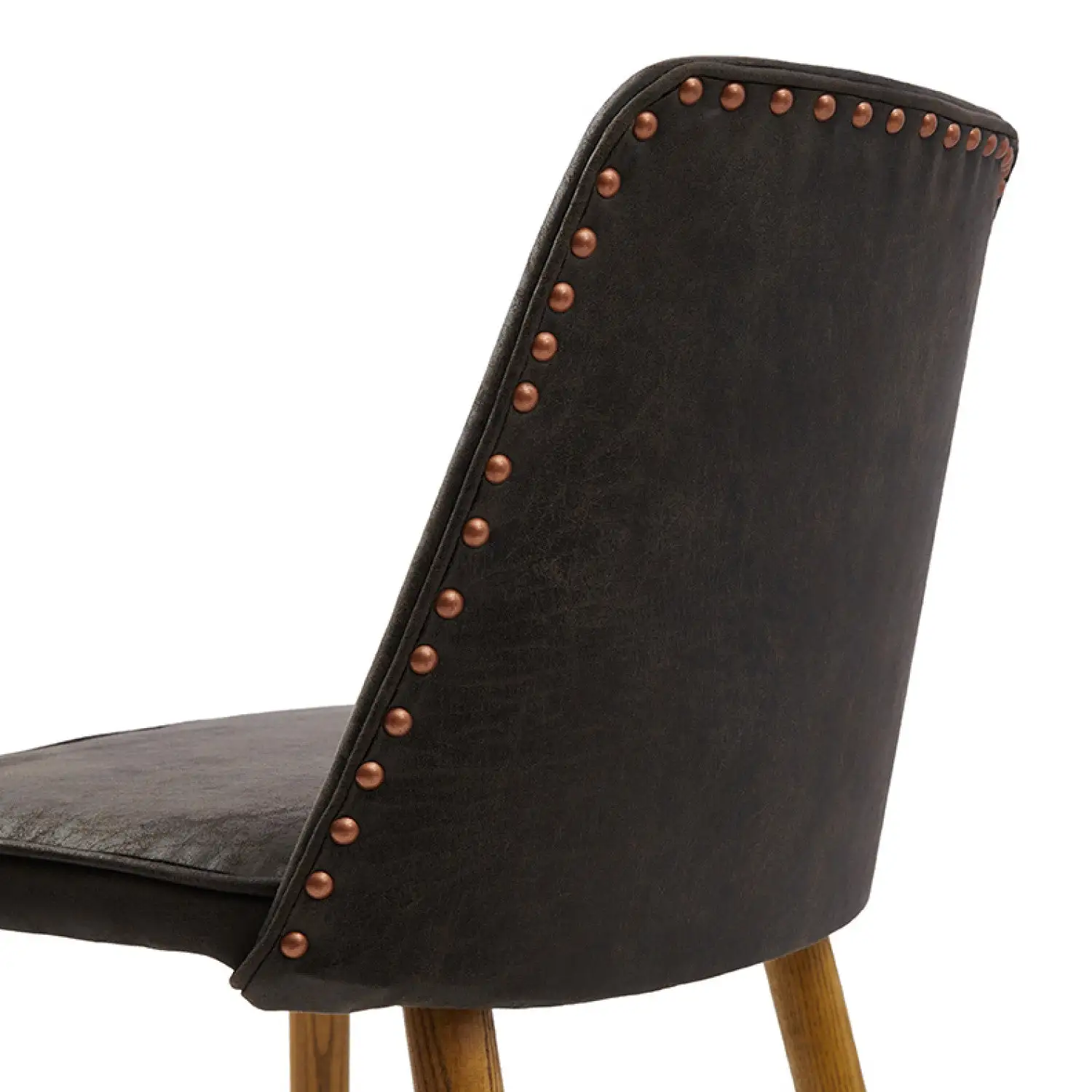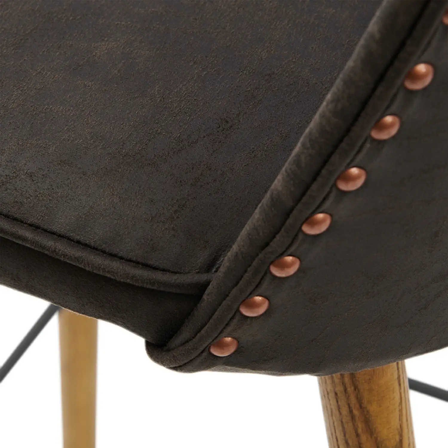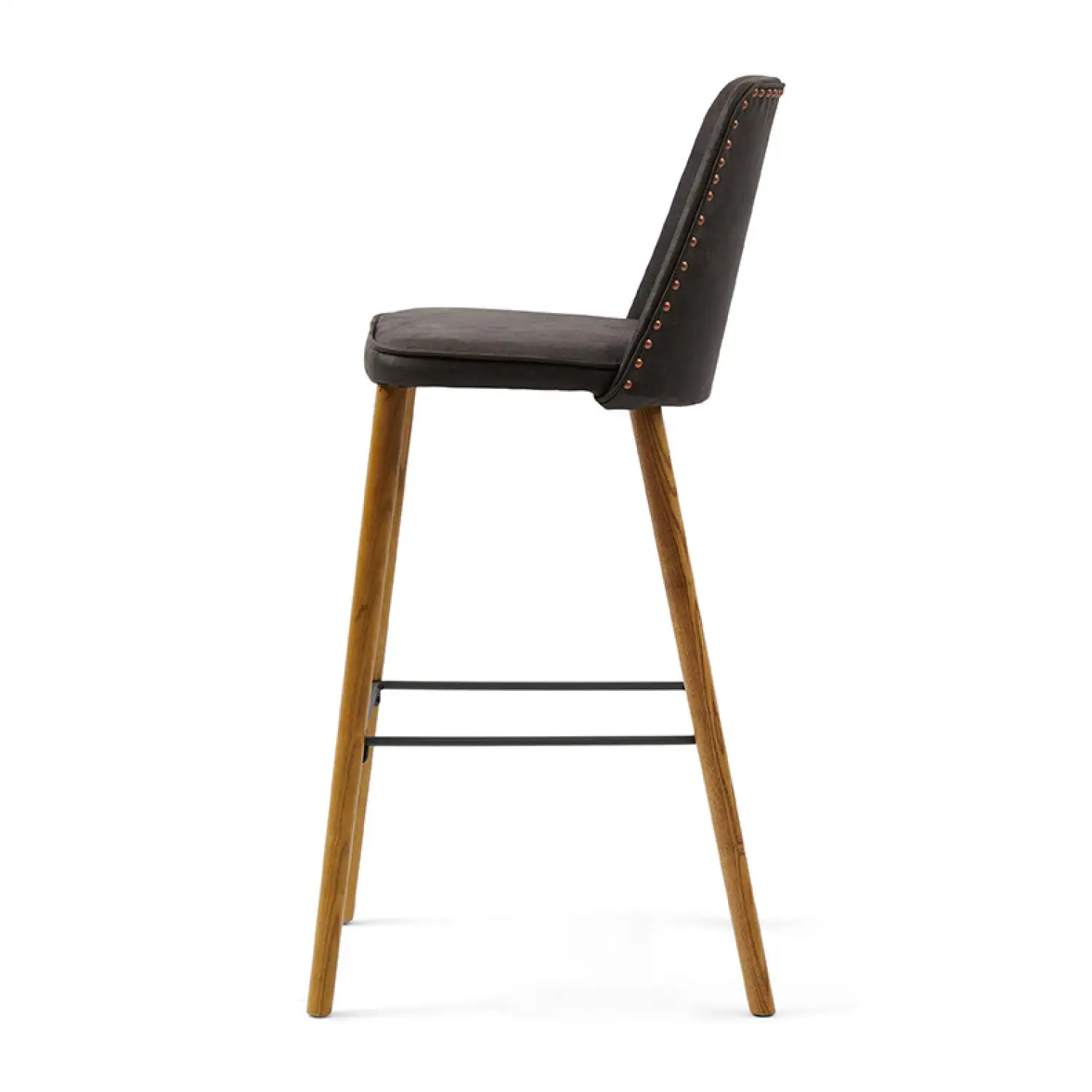 The Vegas Bar Stool is a comfortable seat with a retro look, thanks to its slender legs made from sustainable rubberwood and its carpeted pellini leather upholstery with gold-coloured decorative nails on the backrest. This chair comes in various versions, materials and colours.