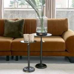With its simple design, this side table fits in almost any interior. The table-top is smooth and has a matte finish, and the edge is slightly raised, so nothing can slide off the table. The black coating of the aluminium gives the table the perfect finishing touch. The side table is available in different heights.