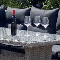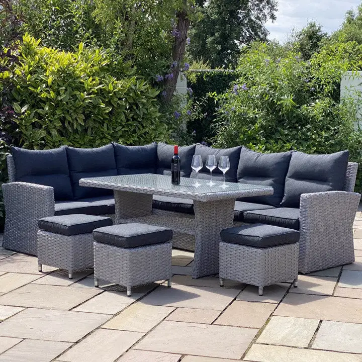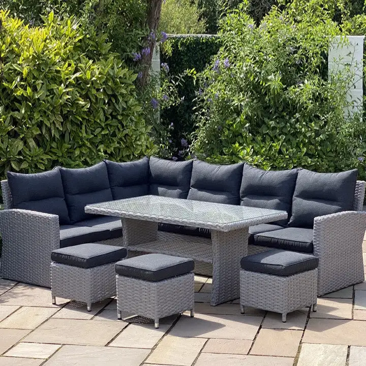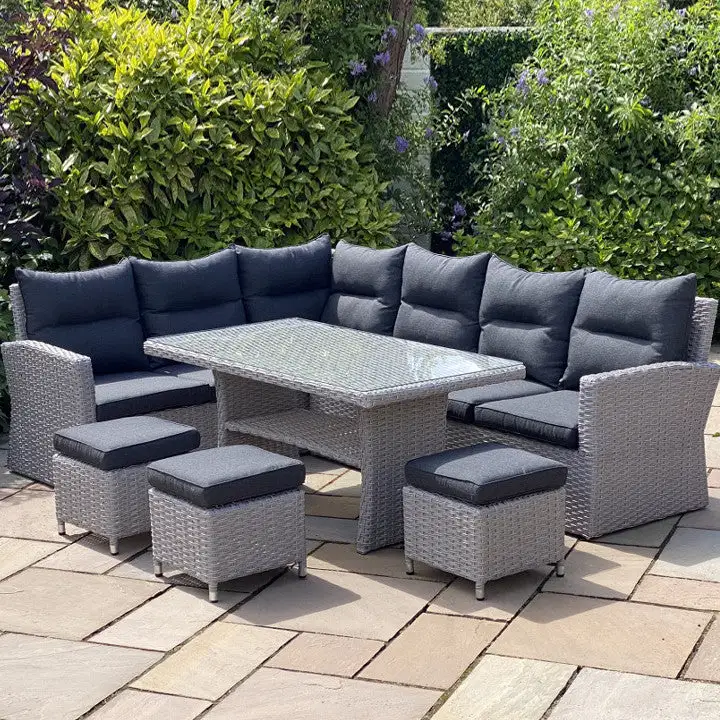 This Venice Casual Dining Set offers a beautiful design and comfortable cushions. The corner sofa has enough space for 6 people and its footstools can be used as additional seating.