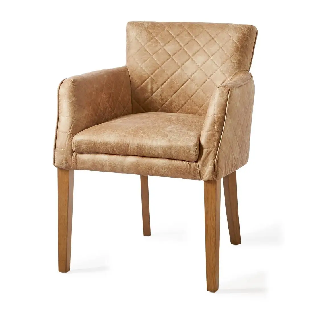 A comfortable dining chair suitable for a lounge area as well as the dining table: that’s the Waverly chair with armrests. Those who settle in this chair will find it difficult to leave it. The pellini leather on the back- and armrests has diamond-patterned top-stitching. The dining chair is available in a variety of fabrics and colours.