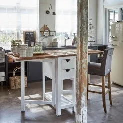 This trendy bar table can easily be extended thanks to the folding leaves.